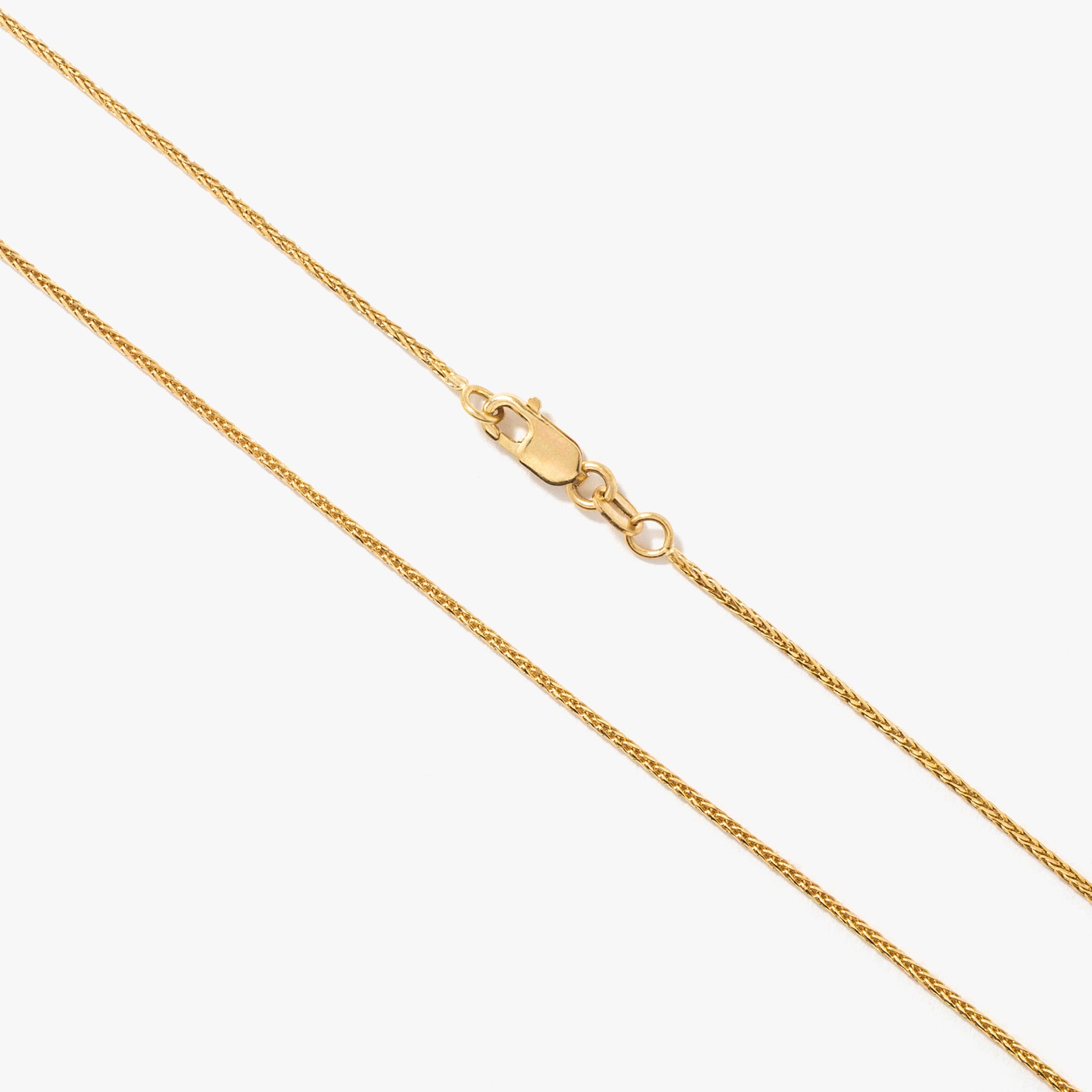 Delicate yet durable, this 1.00mm wheat chain is crafted in 10K yellow gold with a diamond-cut finish that adds subtle shine. The interlocking links create a smooth, refined look, perfect for wearing on its own or with a pendant. Measuring 18 inches, it’s an easy, versatile choice for everyday wear or special occasions.
