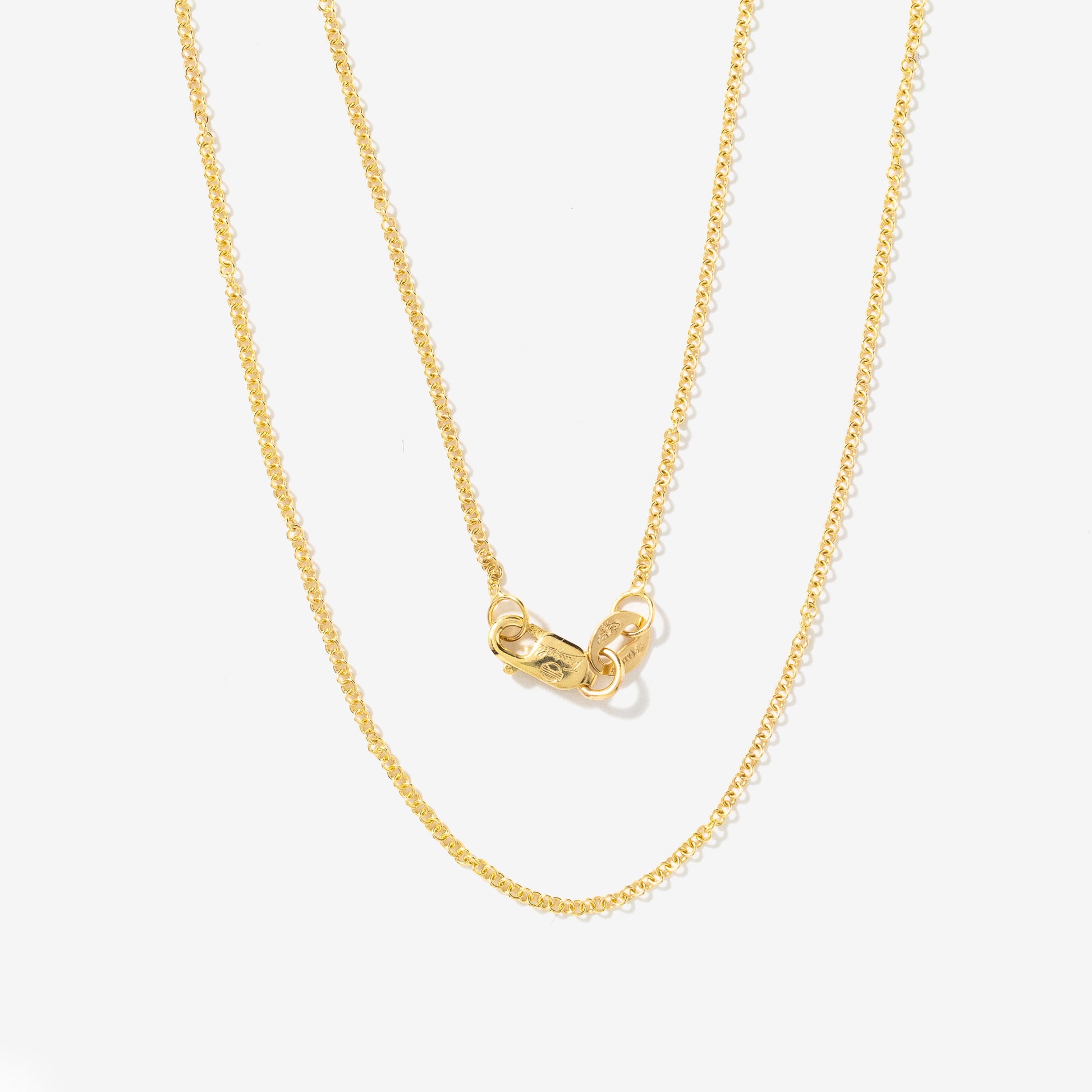 This 18-inch 1.2mm round cable chain in 14K yellow gold offers a timeless and delicate elegance. Its subtle yet durable design makes it perfect for everyday wear or layering with other pieces, adding a refined touch to any outfit. Crafted for lasting beauty, this chain complements pendants or shines beautifully on its own.
