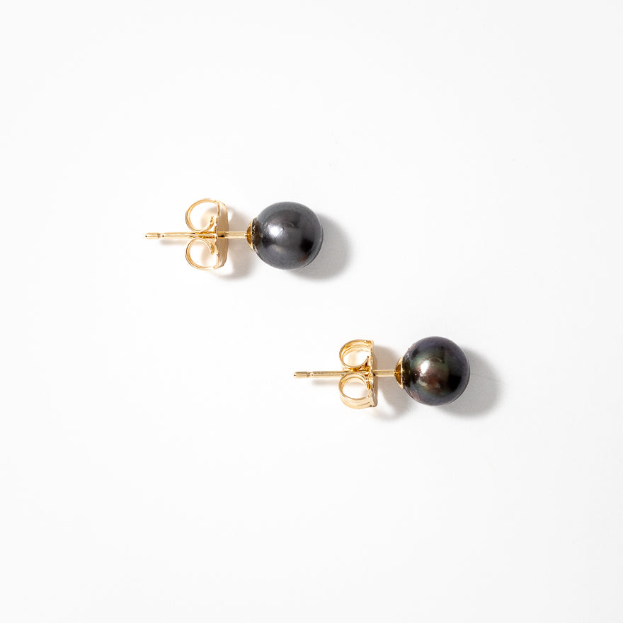 6-6.5mm Black Cultured Pearl Stud Earrings in 14K Yellow Gold