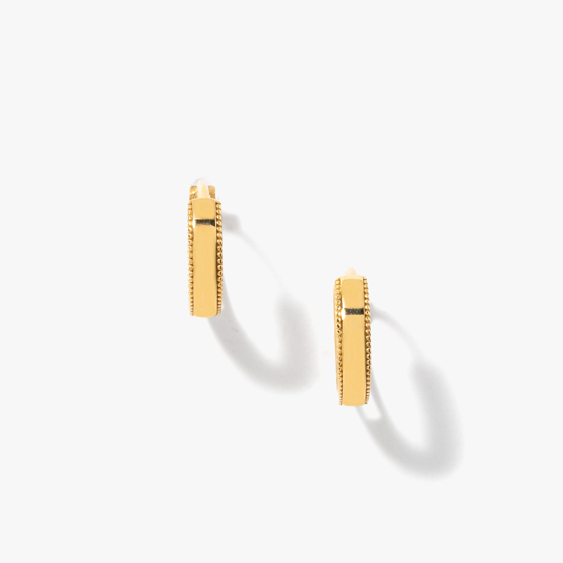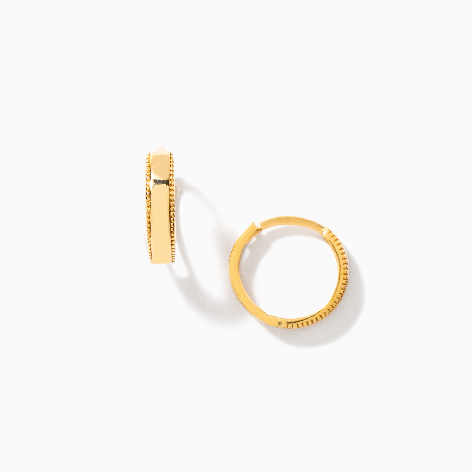 Beaded Edge Huggies in 14K Yellow Gold