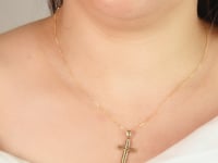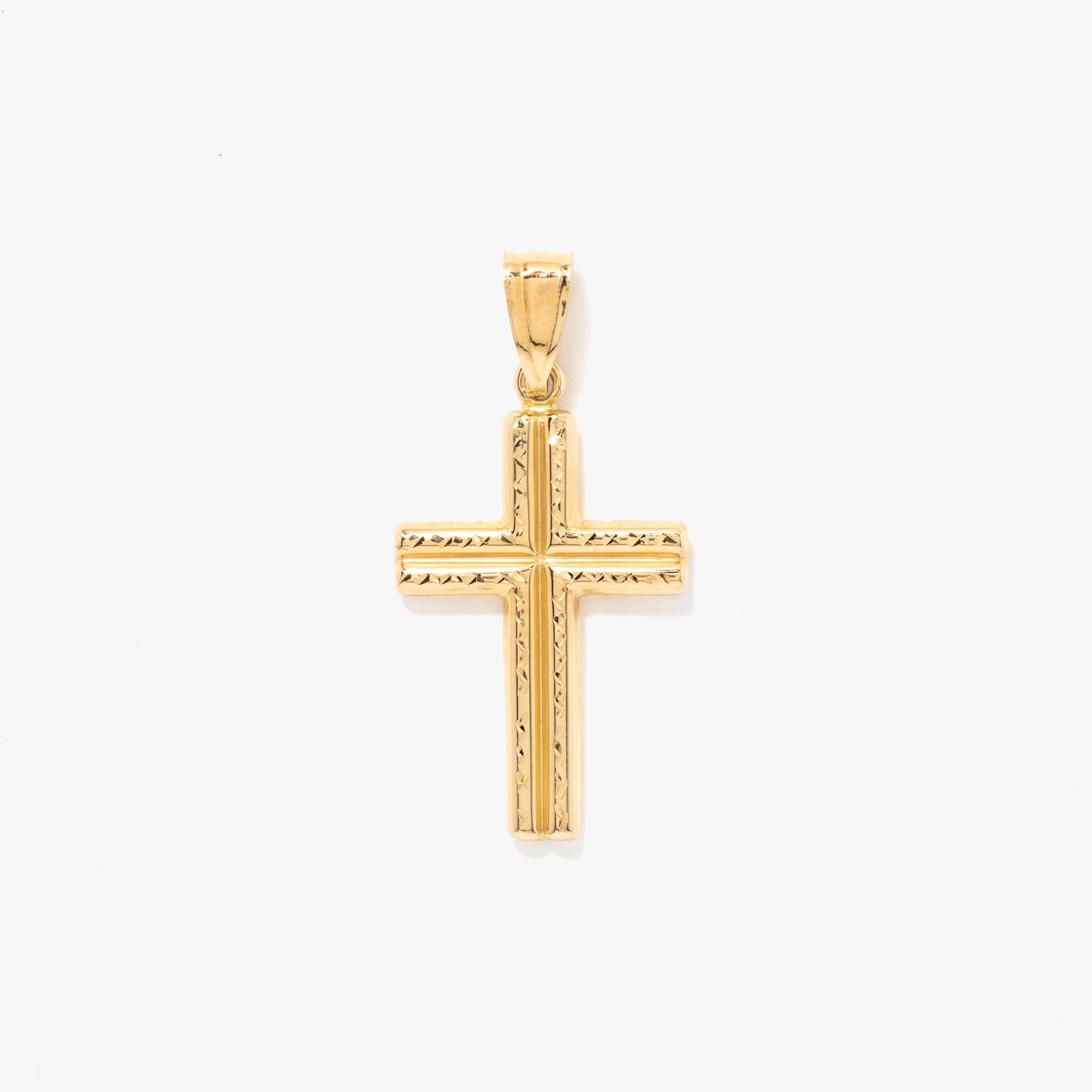 Crafted in lustrous 14K yellow gold, this cross pendant features a refined diamond-cut border that subtly enhances its elegant silhouette. Its timeless design offers a sophisticated statement piece that complements both everyday and formal attire with understated brilliance.