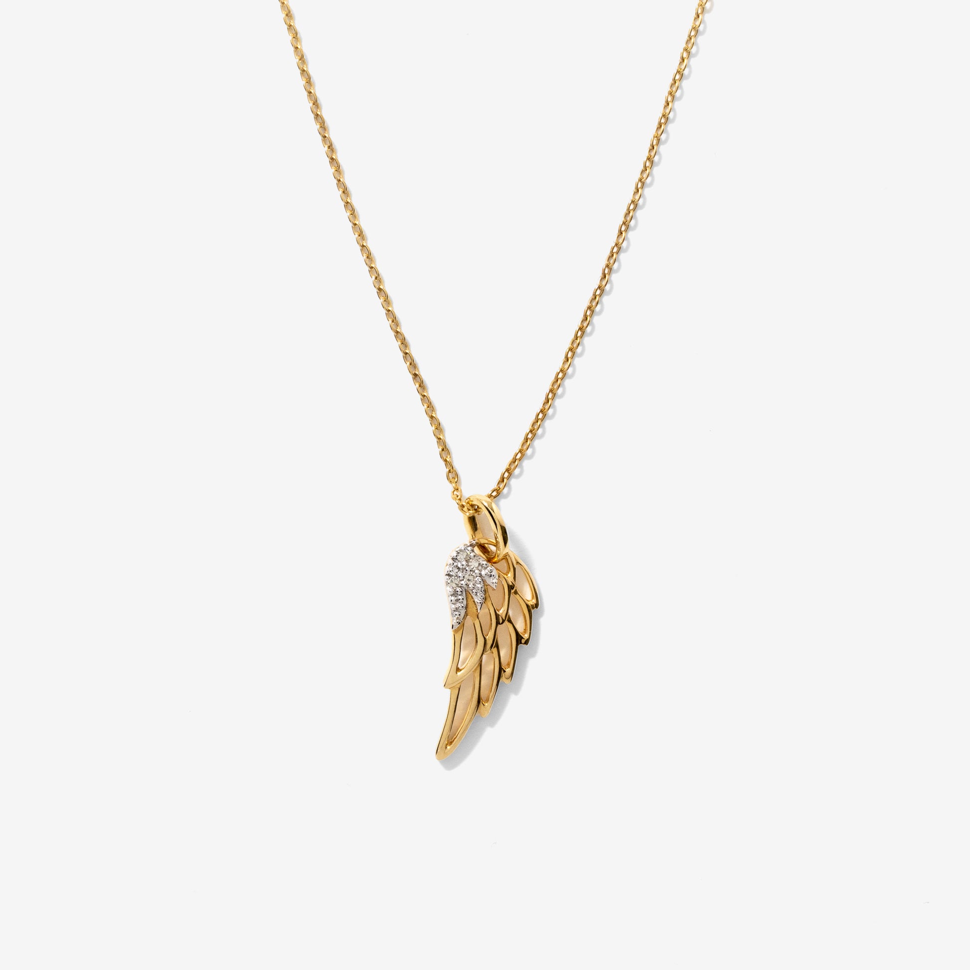 Diamond Angel Wing Necklace in 10K Yellow Gold (0.02 ct tw)