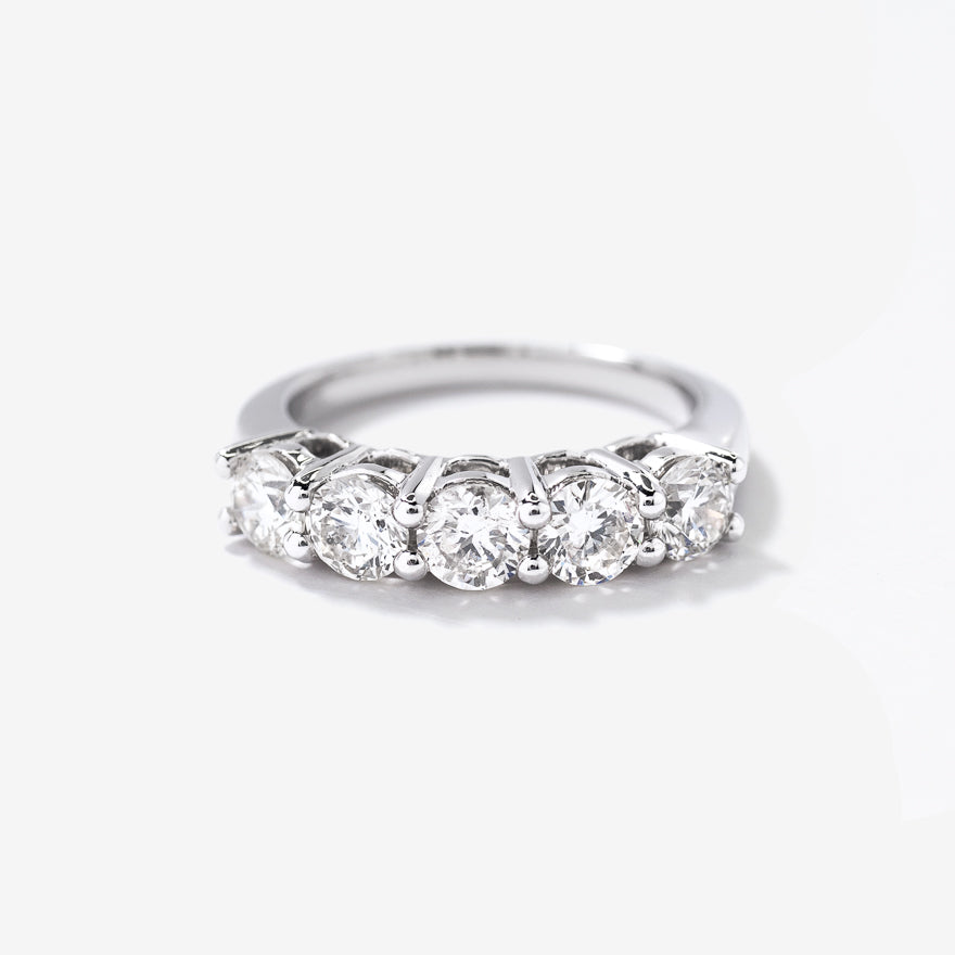 Mark life’s milestones with this breathtaking Diamond Anniversary Ring, masterfully crafted in luminous 14K white gold. Five brilliant diamonds, totaling 1.50 carats symbolizes the strength and beauty of everlasting love. Elegant yet enduring, this exquisite ring captures the essence of devotion—an heirloom-worthy treasure that shines as brightly as the bond it represents.