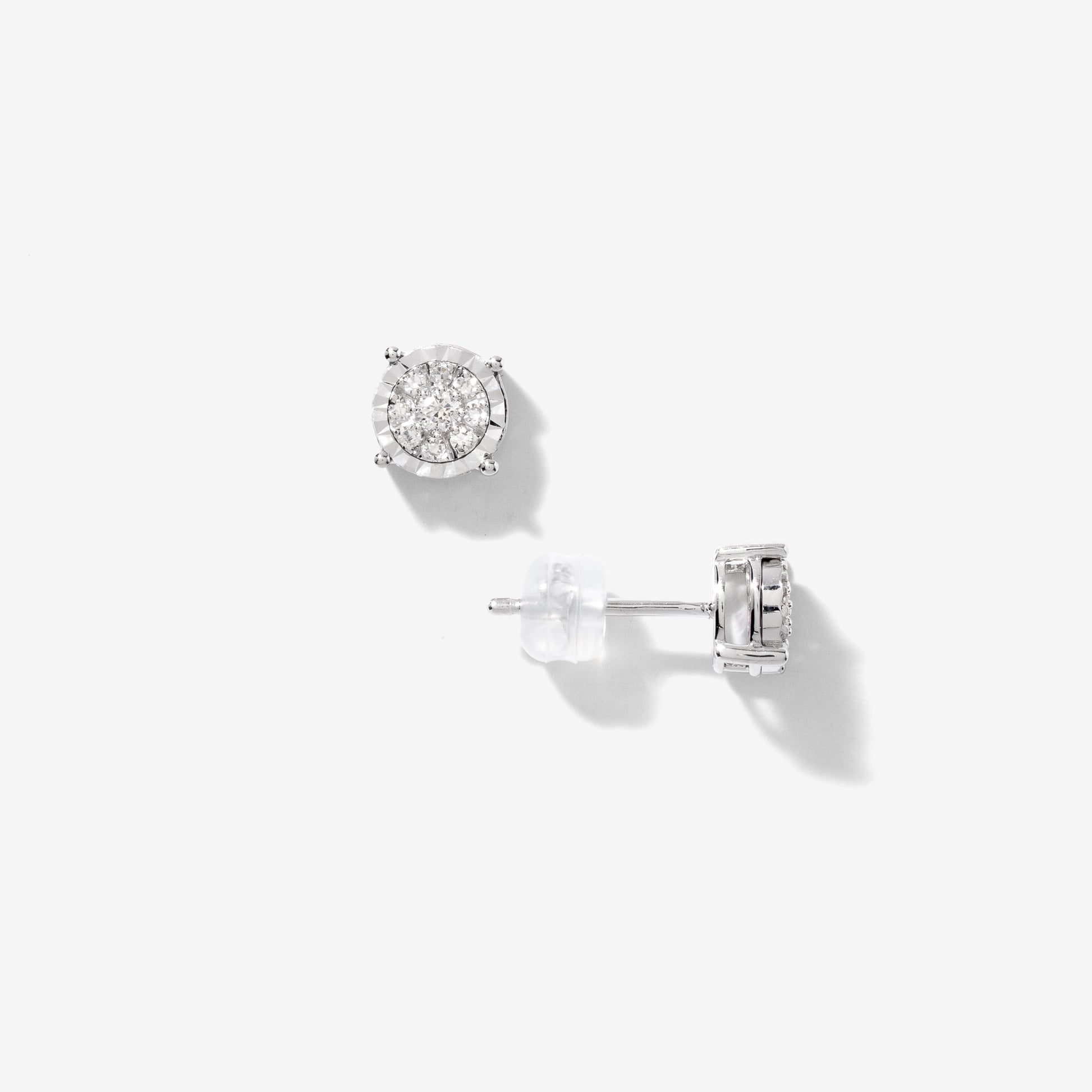 Diamond Cluster Stud Earrings in 10K White Gold (0.16 ct tw)
