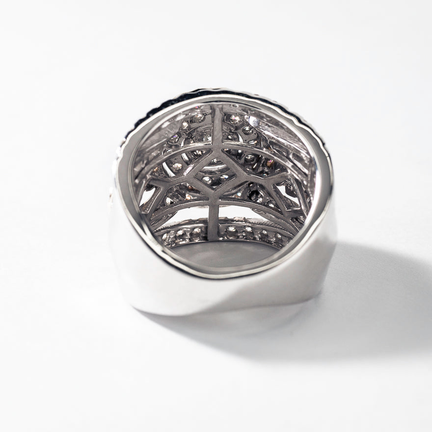 Radiate sophistication with this magnificent diamond dinner ring, a true statement of luxury and grace. Exquisitely crafted in 10K yellow and white gold, the design showcases a dazzling mosaic of 118 diamonds with a total weight of 3.00 carats. Each stone is expertly set to maximize brilliance, creating a captivating play of light from every angle. The intricate dual-tone craftsmanship adds depth and dimension, while the thoughtfully contoured gallery ensures a refined, comfortable fit. A masterpiece of elegance, this ring embodies timeless glamour and exceptional artistry.