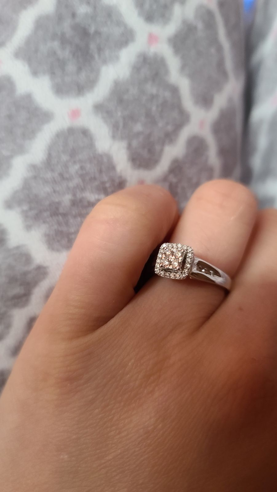 Diamond Halo Cluster Ring in 10K White and Rose Gold (0.25ct tw)