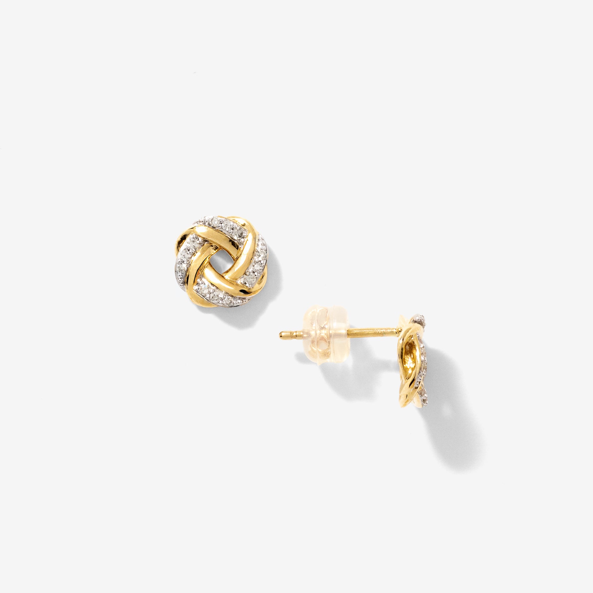 Diamond Love Knot Stud Earrings in 10K Yellow Gold (0.13 ct tw)