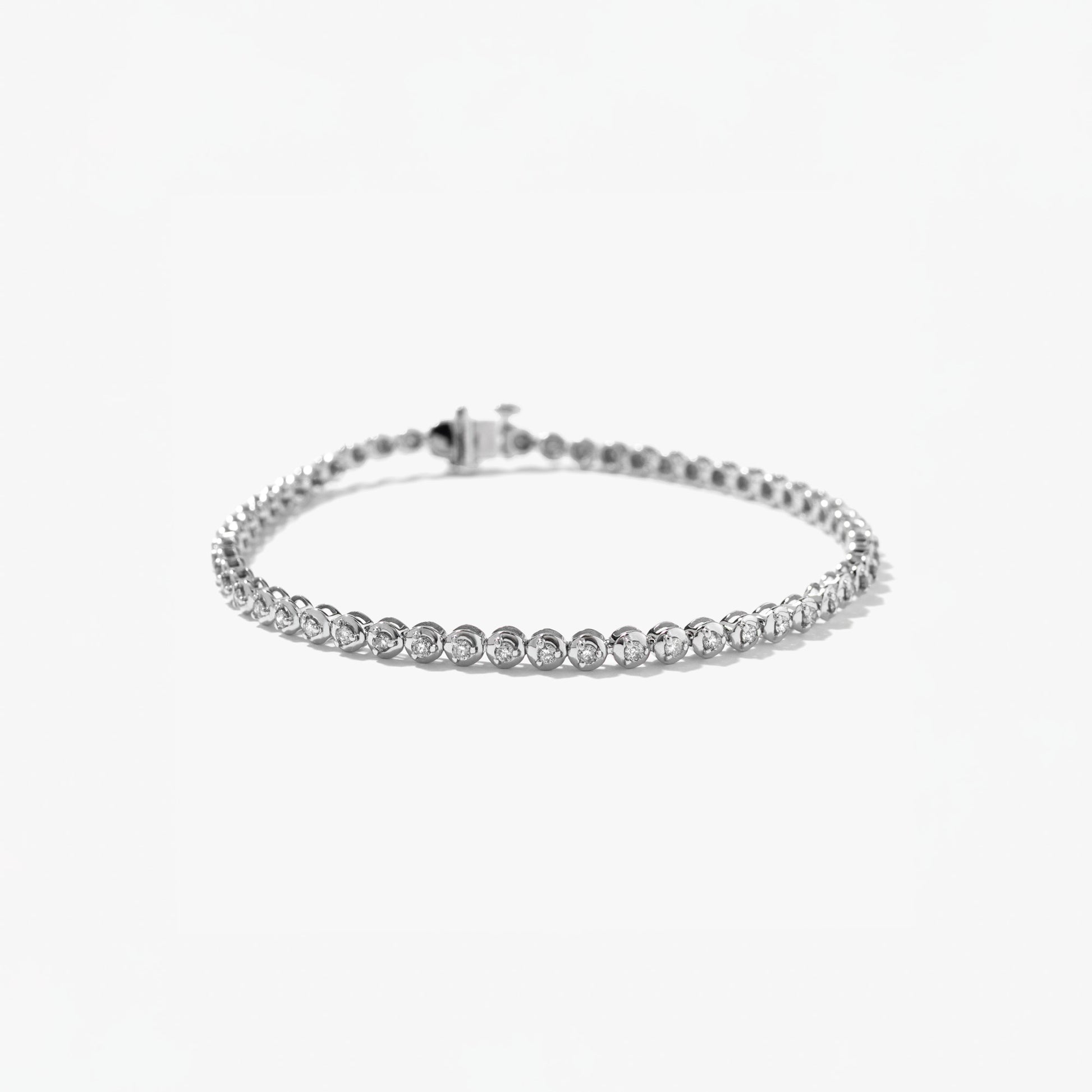 Grace your wrist with a radiant ribbon of light. This dazzling 7" tennis bracelet, expertly crafted in luminous 10K white gold, showcases 55 glimmering diamonds totalling a full 1.00 carat. Each stone is thoughtfully set to create a continuous line of sparkle that dances with every movement. Refined yet impactful, it’s the perfect piece to elevate everyday moments and illuminate life’s most special occasions.