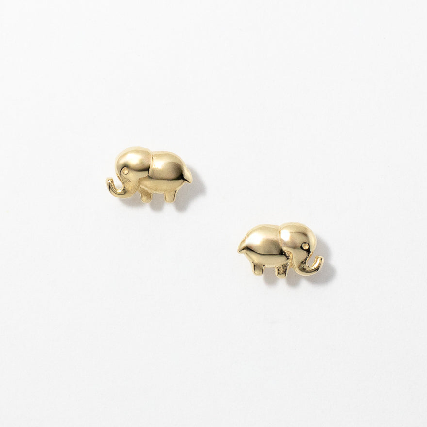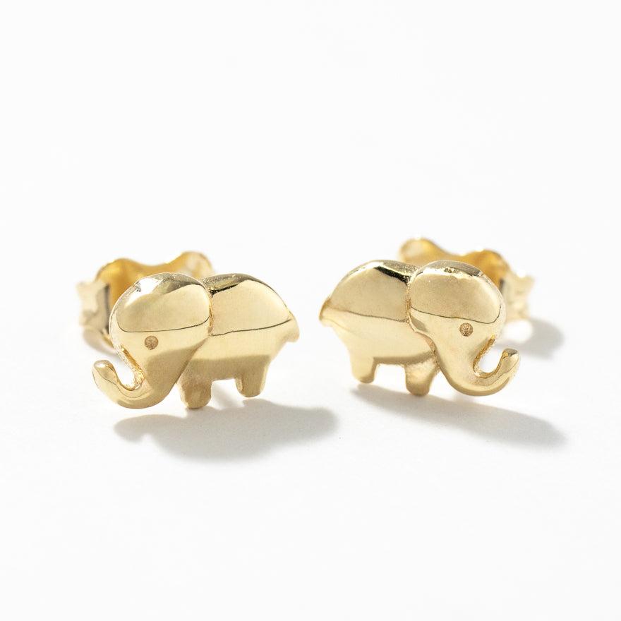 Elephant Stud Earrings in 10K Yellow Gold