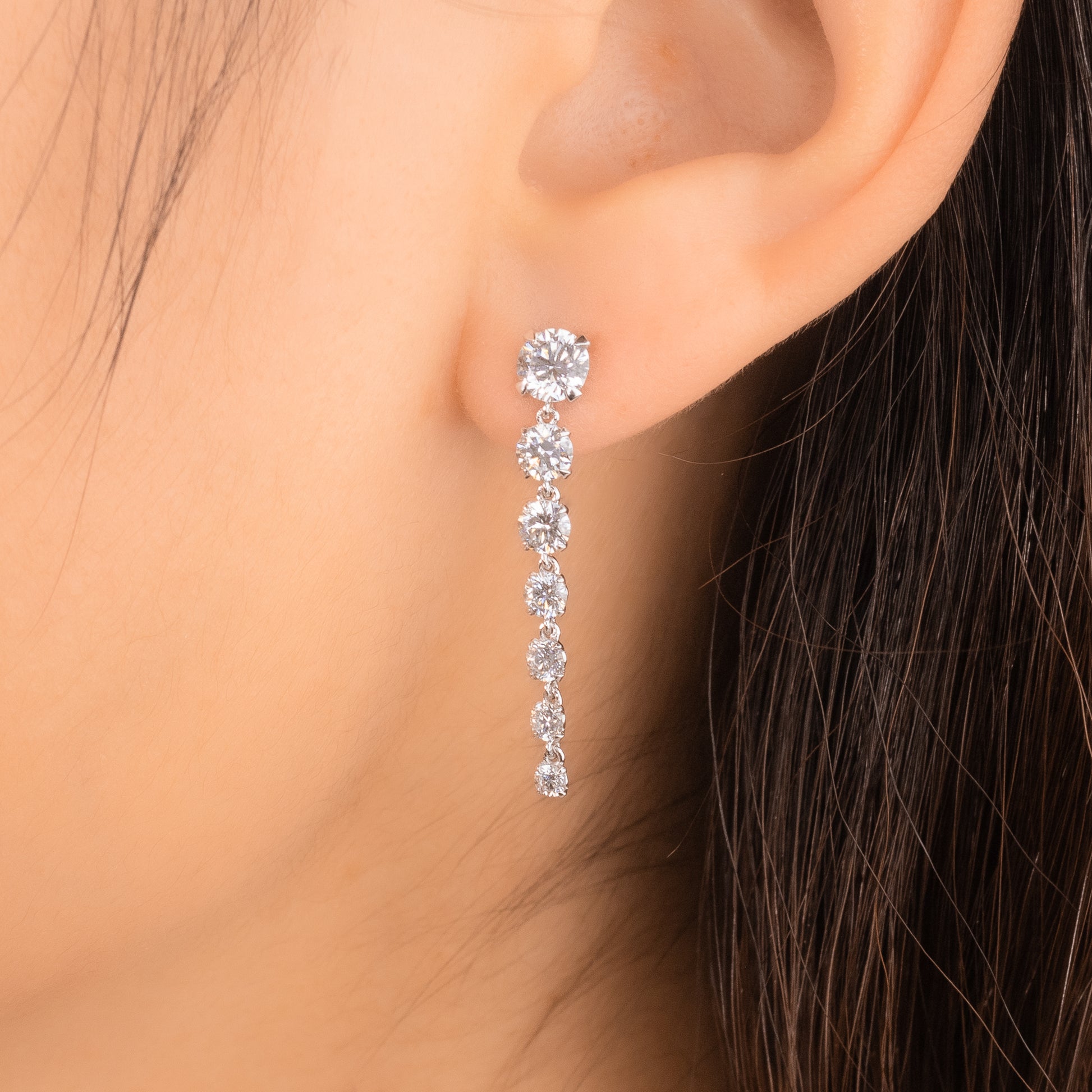 Elevate your elegance with these exquisite lab grown dangle diamond earrings set in 14K white gold. Featuring a total of 14 brilliant diamonds, these earrings boast a combined weight of 2.00 carats with VS clarity and G color, ensuring exceptional sparkle and clarity. Perfectly crafted to complement any ensemble, they offer a refined yet contemporary touch to your jewelry collection.