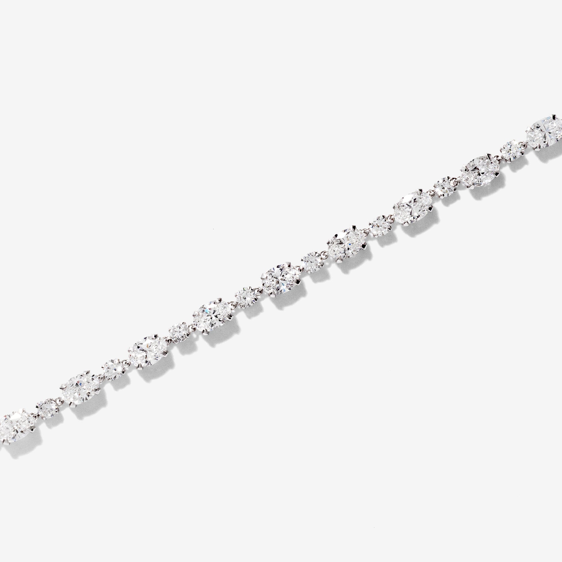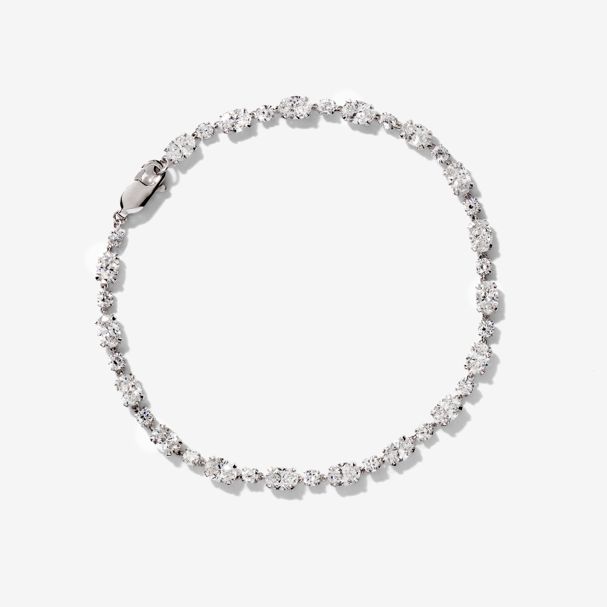 Make a striking statement with this exquisite 7" lab-grown diamond bracelet, expertly crafted in luminous 14K white gold. Featuring a refined combination of oval and round diamonds, the design offers graceful contrast and a beautifully fluid silhouette along the wrist. Set with a total of 34 lab-grown diamonds (VS clarity, G Colour), this bracelet has a combined total diamond weight of 5.00 carats. Elegant yet impactful, this bracelet is perfect for special occasions or elevated everyday wear. It is an enduring piece designed to shine for years to come.