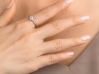 Celebrate your unbreakable bond with this captivating 10K White Gold Promise Ring. AIt showcases a radiant 0.30-carat lab-grown diamond, exuding brilliance and elegance. Surrounding the centerpiece are 2 accent diamonds that adds an extra touch of sparkle. All diamonds are VS clarity and G colour. This ring is more than just a piece of jewelry—it's a symbol of your eternal devotion, capturing the essence of your everlasting love.