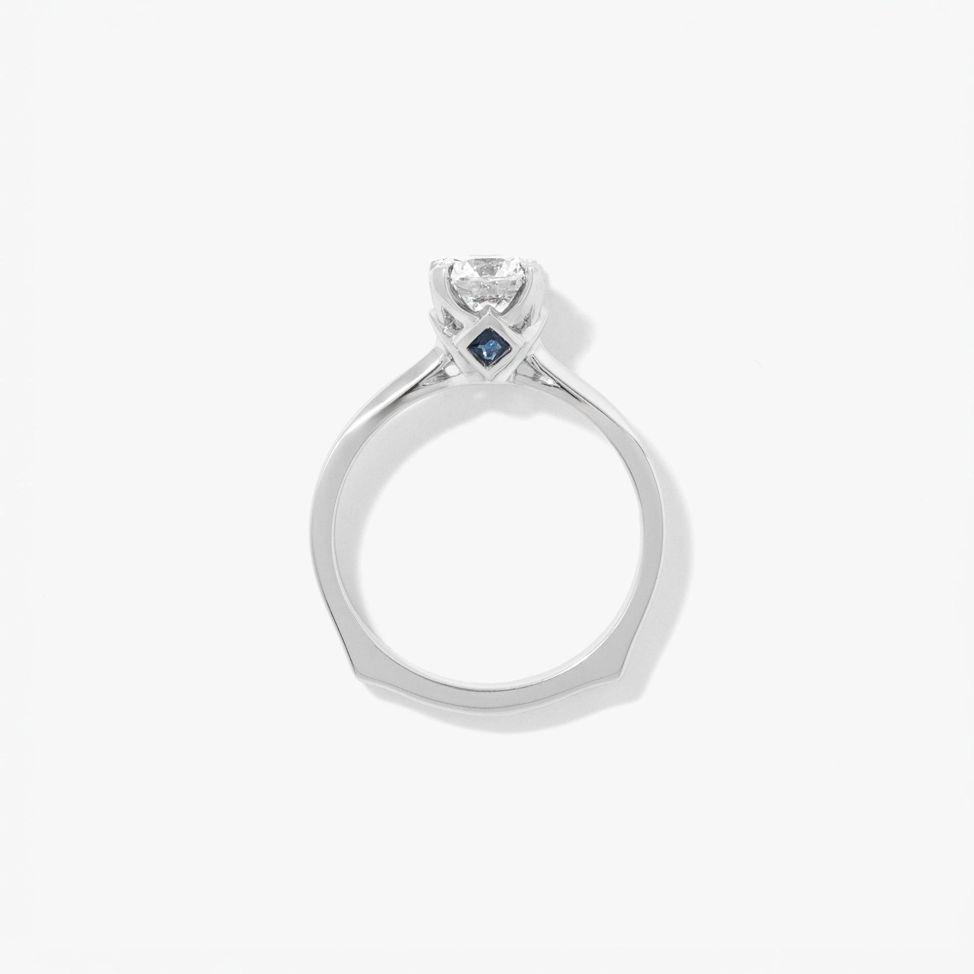 Celebrate your love with a ring that radiates both meaning and sophistication. Expertly crafted in 14K white gold, this captivating engagement ring showcases a dazzling 1-carat round lab-grown diamond at its heart, boasting G color and VS clarity for remarkable brilliance. On each side, a vibrant blue sapphire adds a romantic touch of color that symbolizes loyalty, depth, and enduring devotion. A perfect harmony of modern elegance and timeless sentiment, this ring is designed to shine as brightly as your love story.