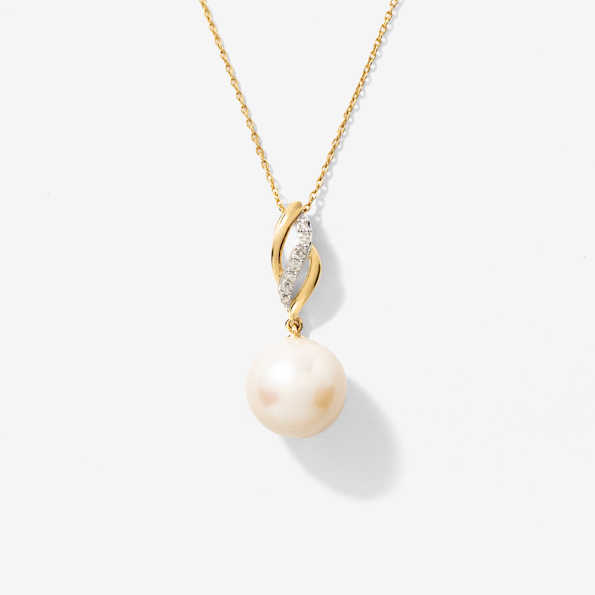 Graceful and luminous, this exquisite pearl necklace is a timeless expression of elegance. Expertly crafted in warm 10K yellow gold, it features a captivating 10mm pearl that radiates natural beauty. Seven sparkling accent diamonds surround the centerpiece, adding a refined touch of brilliance to the design. The matching chain includes adjustable jump rings, allowing for versatile styling at different lengths. Whether paired with everyday attire or worn for a special occasion, this necklace brings an effortless sophistication to any look.