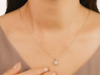 This modern tension-set necklace is crafted in 14K yellow gold and features a single 0.50-carat round brilliant lab-grown diamond with VS clarity and G colour. The unique faceted setting is designed to catch light from every angle, enhancing the diamond’s radiant sparkle.