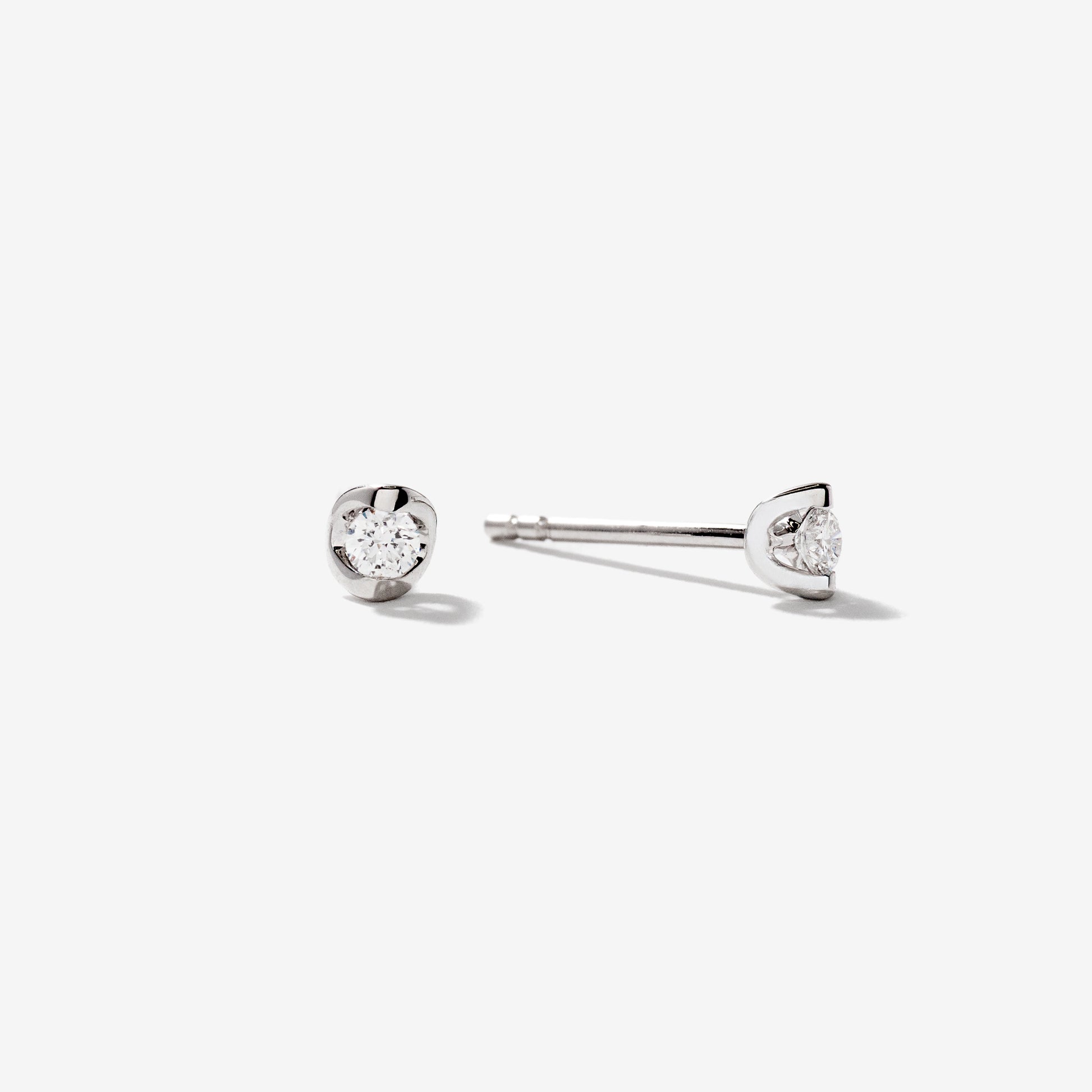 Elevate your everyday style with these modern tension-set solitaire stud earrings, crafted in 14K white gold. Each earring showcases a 0.05-carat round brilliant lab-grown diamond with VS clarity and G colour, offering exceptional sparkle and refined elegance. The unique faceted setting is designed to catch the light from every angle, enhancing the brilliance of the diamonds. With a total diamond weight of 0.10 carats, these timeless studs are perfect for both daily wear and special occasions.