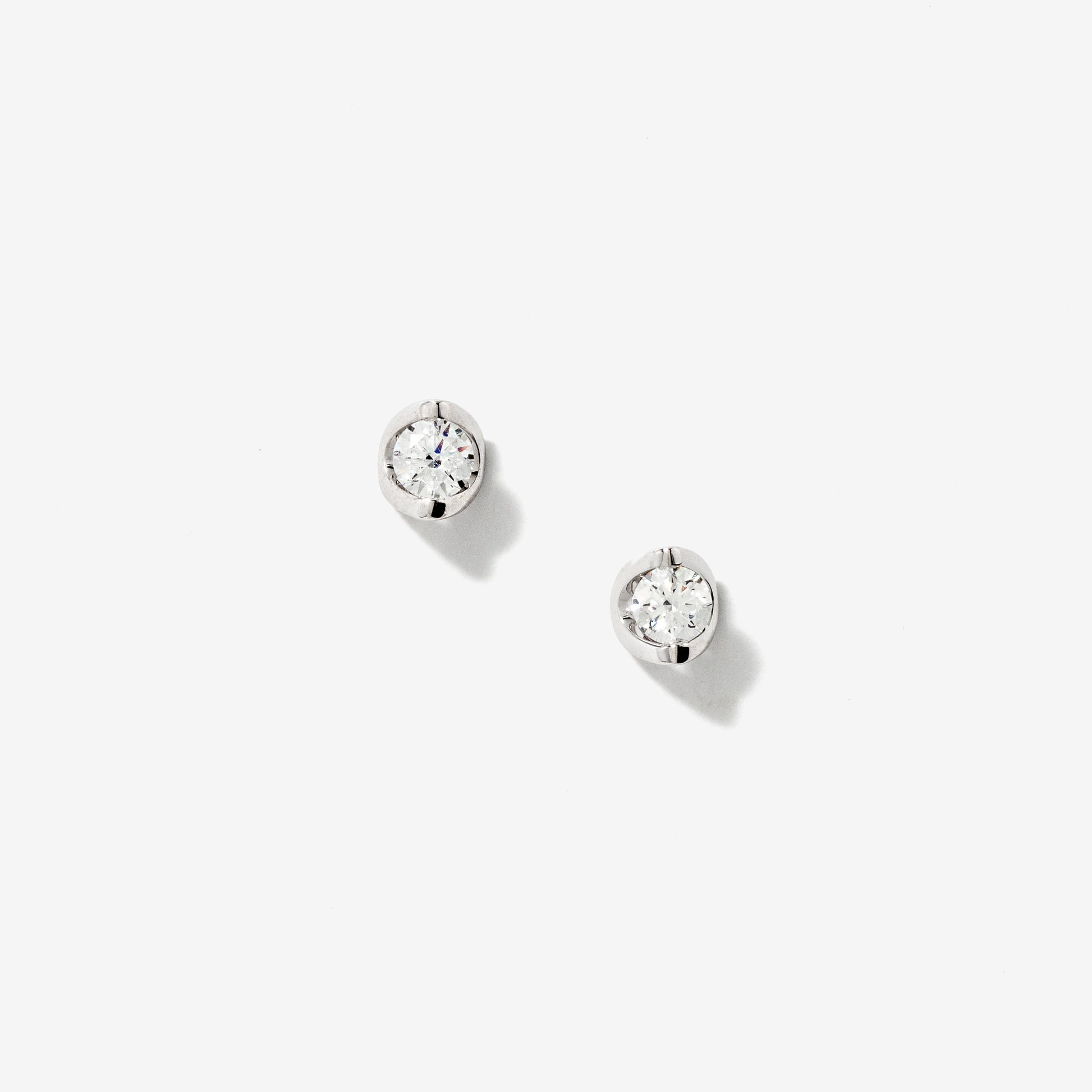 Elevate your everyday style with these modern tension-set solitaire stud earrings, crafted in 14K white gold. Each earring showcases a 0.25-carat round brilliant lab-grown diamond with VS clarity and G colour, for a total diamond weight of 0.50 carats. The unique faceted setting is designed to catch the light from every angle, maximizing each diamond’s brilliance.
