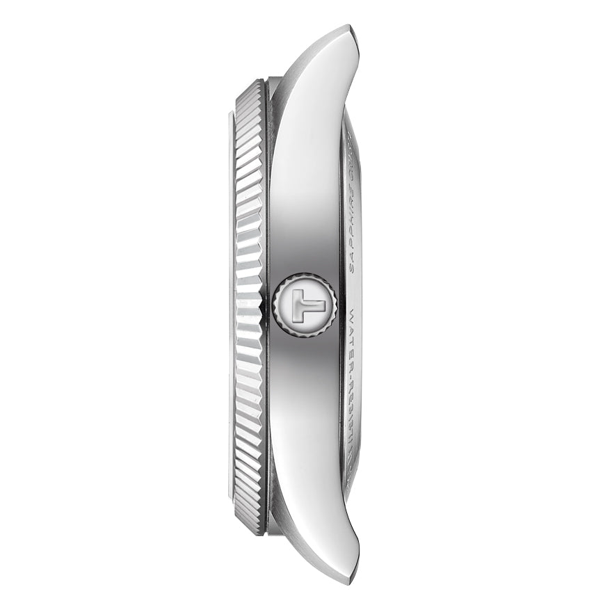 The Ballade COSC is an evolution of a model with deep roots in the Tissot collection. It was reintroduced in 2024 and is now elevated with chronometer-certified performance. At its core is the Powermatic 80 movement, officially recognized for its accuracy and reliability. Its fluted bezel defines the watch’s identity, with finely cut ridges that add depth and character to the case. The Ballade COSC combines certified performance with sharp visual detailing, a watch that carries its precision with presence.