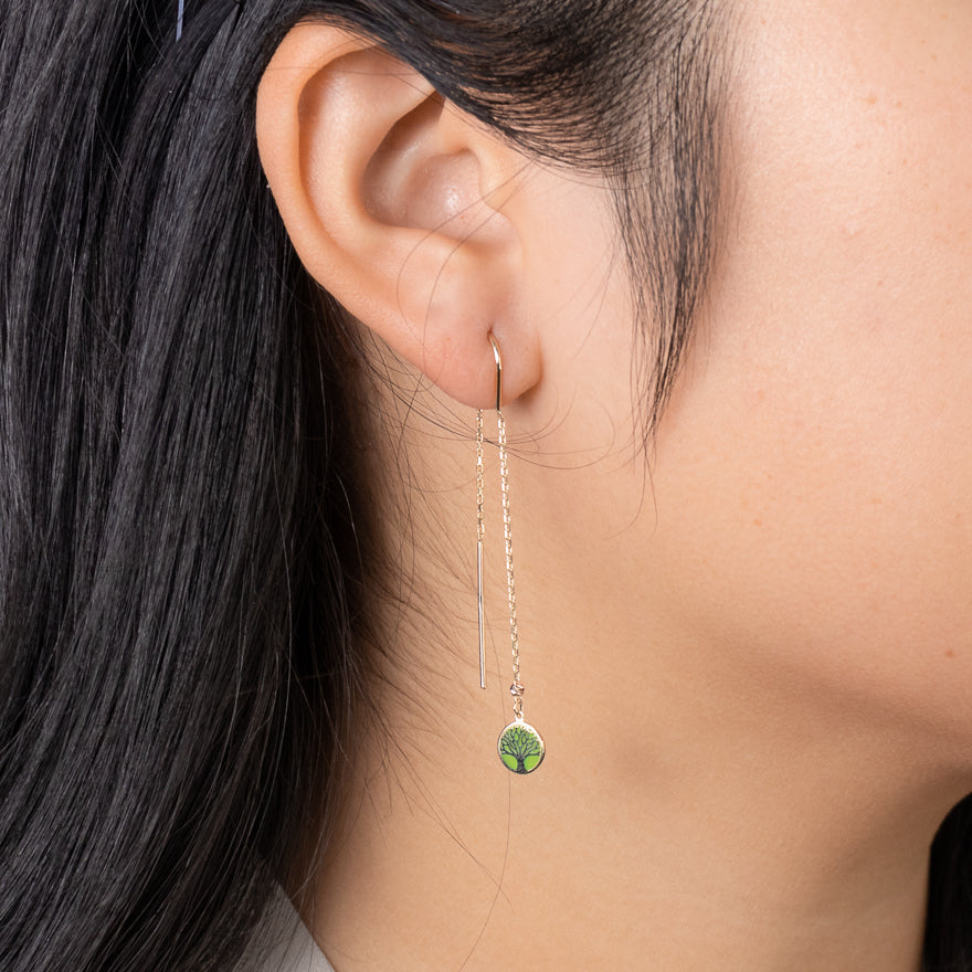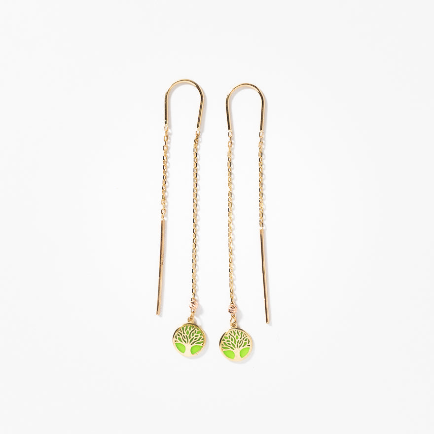 Tree of Life Long Drop Earrings in 10K Yellow Gold